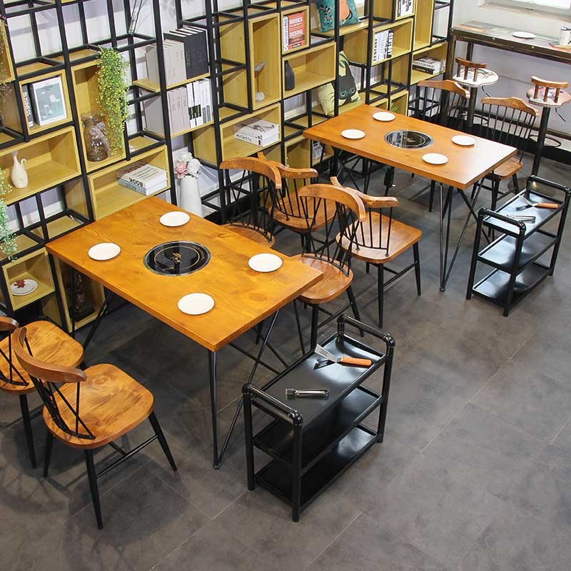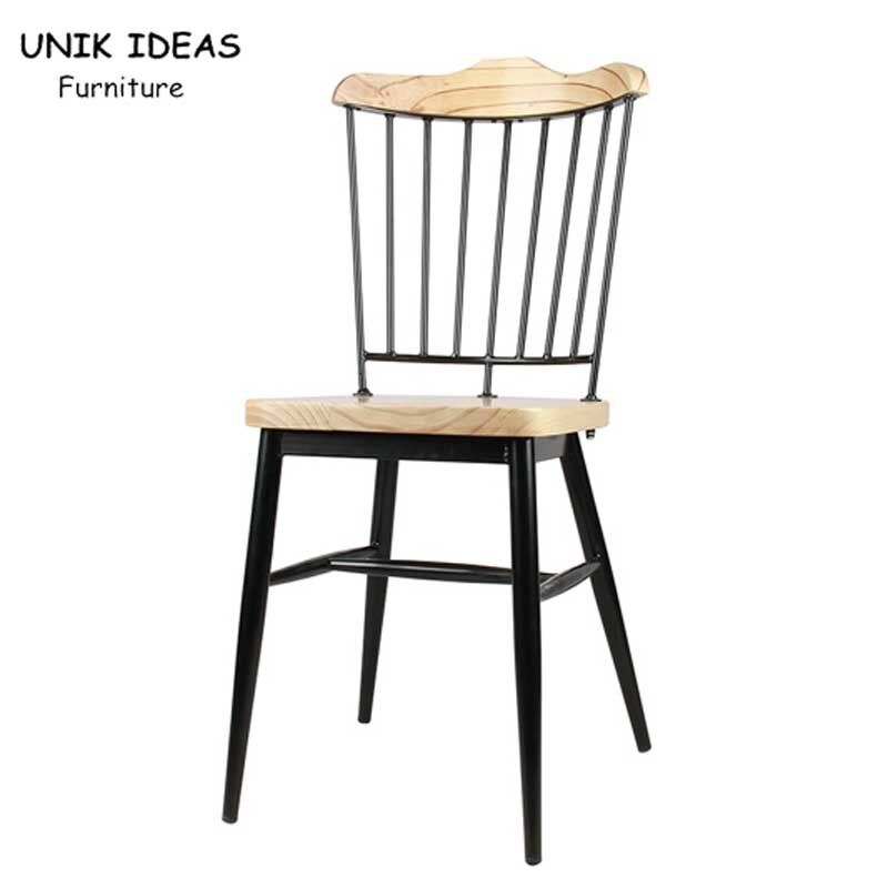 Retro Solid Wood Dining Chair High Back Metal Restaurant Bar Chair