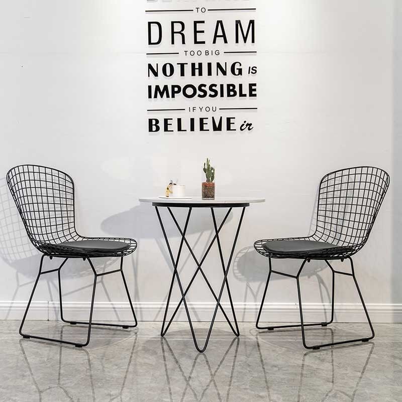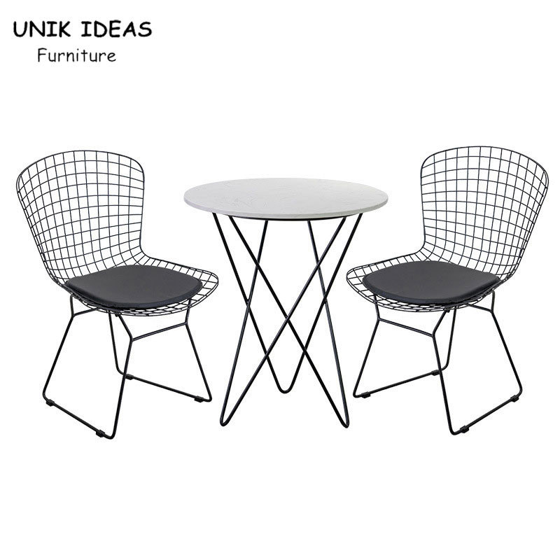 Modern Black Metal Wire Dining Chair And Table With Leather Cushion