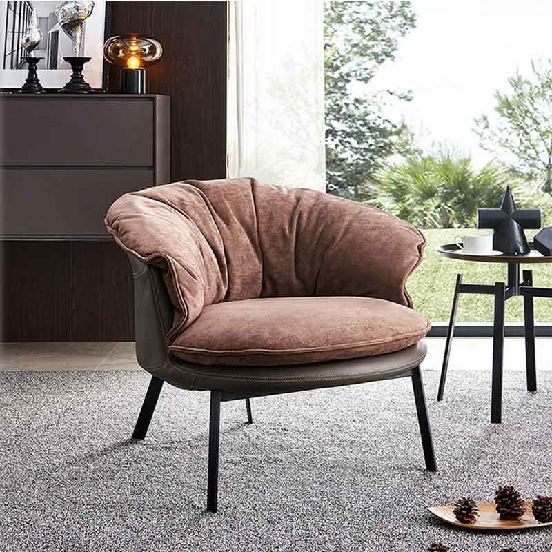 Comfortable Brown Velvet Fabric Armchair Living Room Single Seat